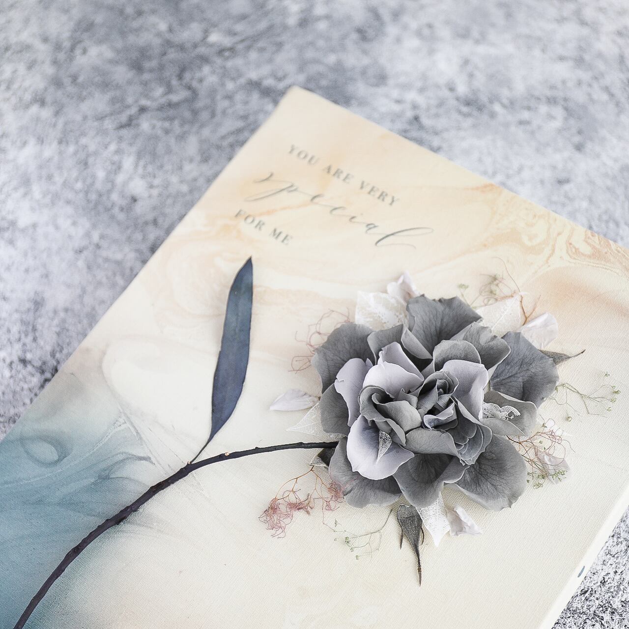 プリザーブドフラワーにしかないグレーの花びらで。。